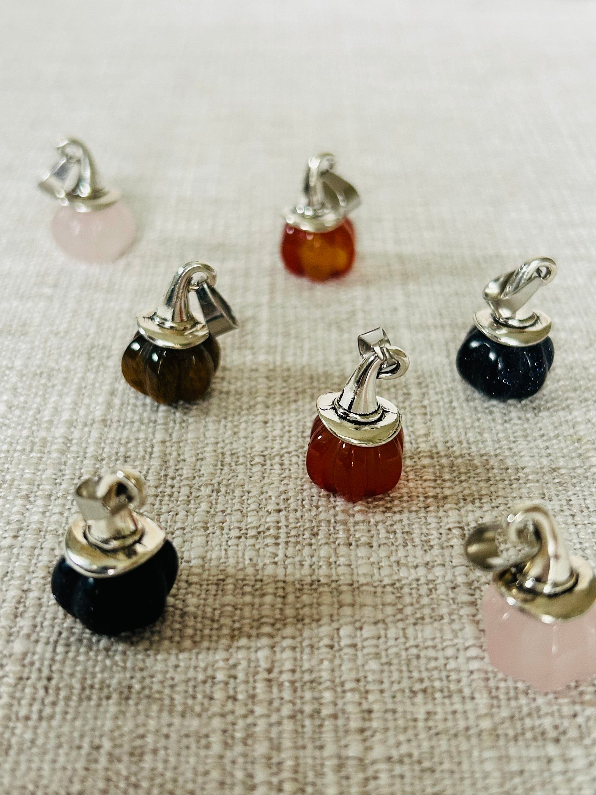 Each pendant carries the natural energy of its crystal. The pumpkin shape represents abundance, grounding, and protection, while the stainless steel witch hat symbolizes intuition, wisdom, and personal power. Together, they create a piece that supports creativity, confidence, and a little everyday enchantment.