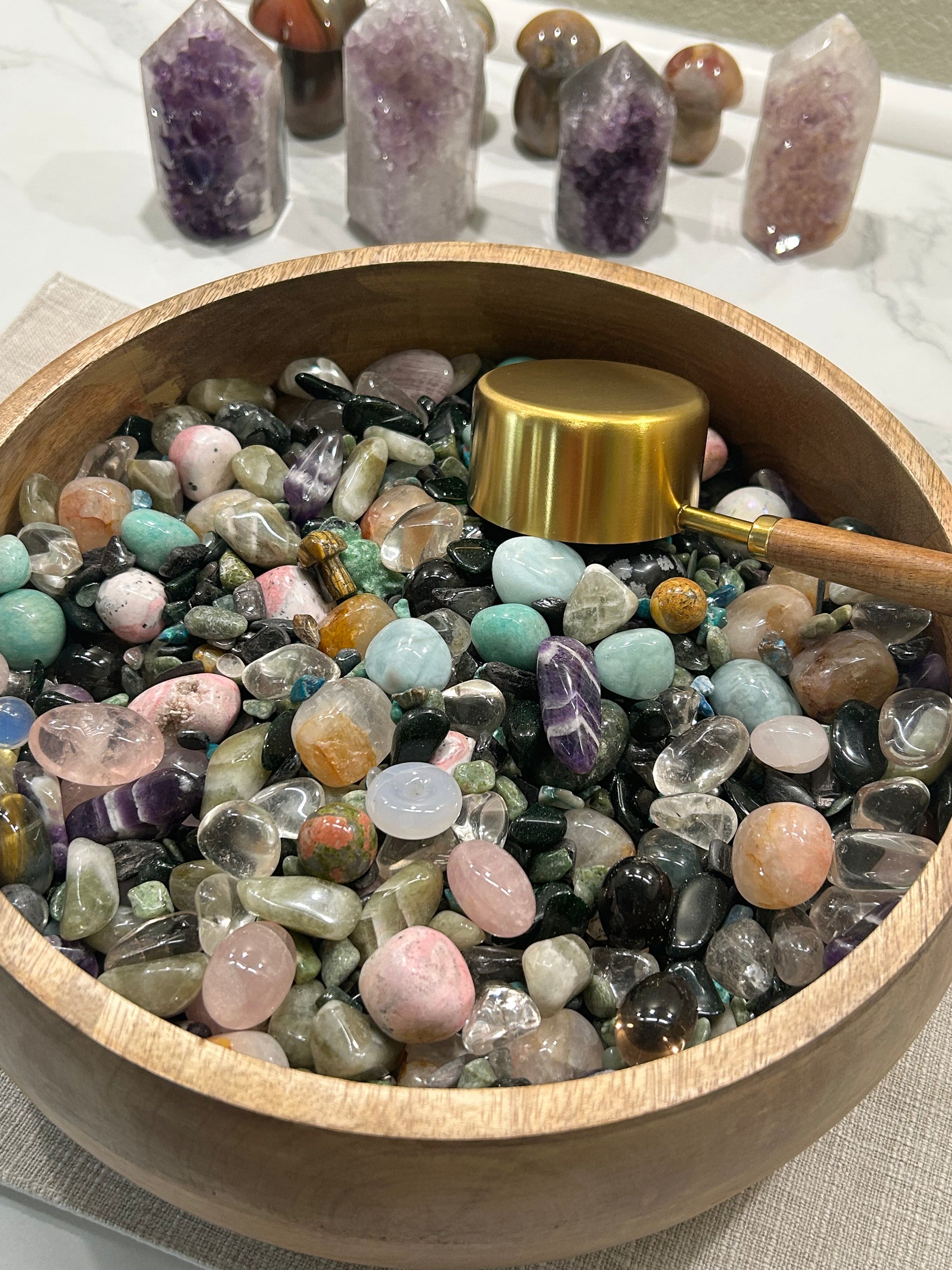 Each scoop is intuitively filled with a wonderful mix of tumbles, including: