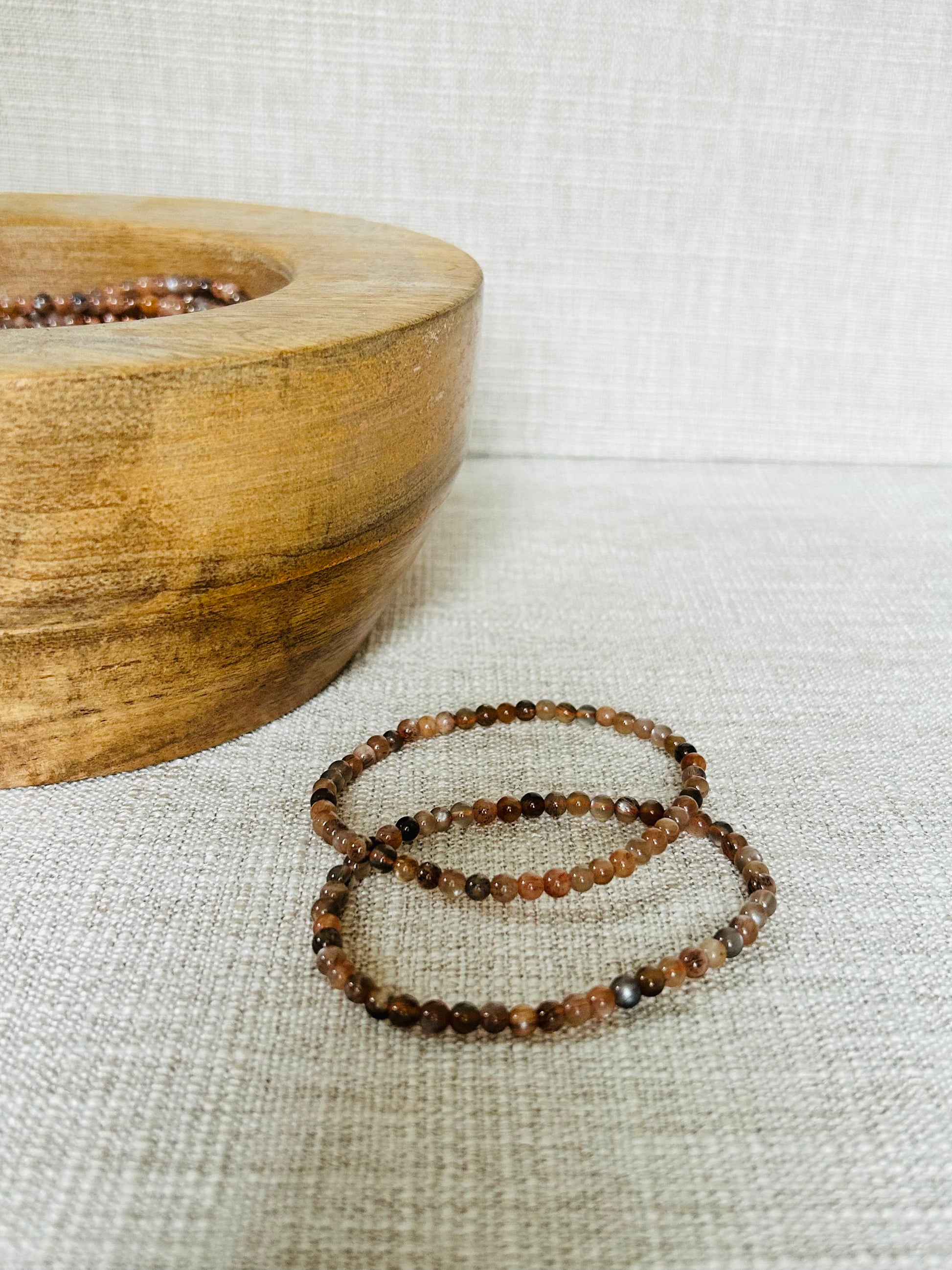 Black Moonstone 4mm bead stretch bracelet 7.5”.